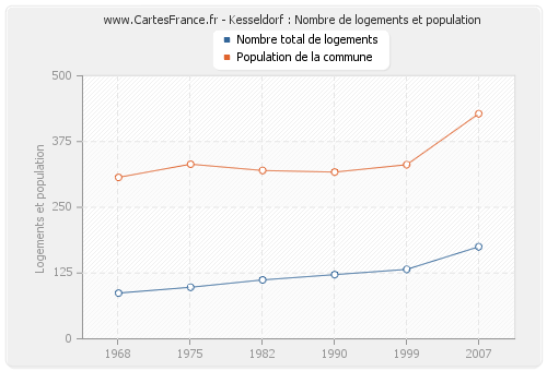 Nombre d'habitants et de logements de Kesseldorf