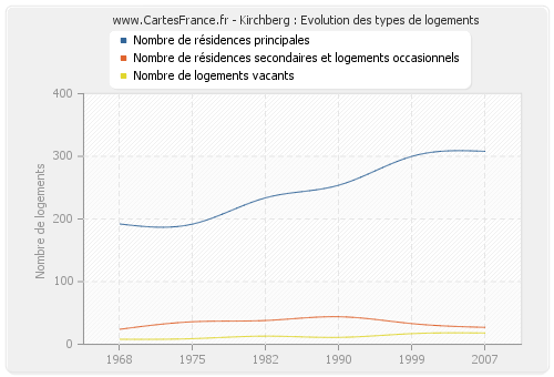 - Nombre de résidences principales de Kirchberg en 2007 : 308