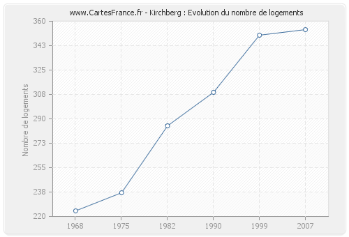 Le nombre de logements de Kirchberg était de 354 en 2007, 350 en 1999, 309 en 1990, 285 en 1982, 237 en 1975 et 224 en 1968.