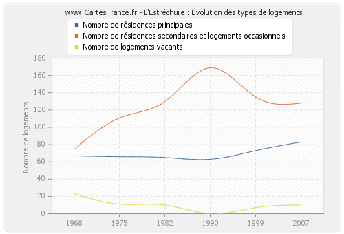En 2007 les logements de L'Estréchure étaient composés de 83 résidences principales, 128 résidences secondaires ou occasionnels ainsi que 10 logements vacants.