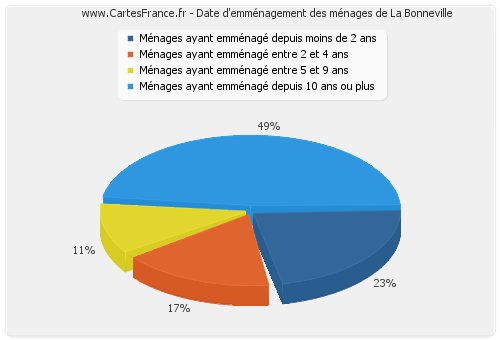 - Nombre de ménages de La Bonneville ayant emménagé depuis 10 ans ou plus : 34