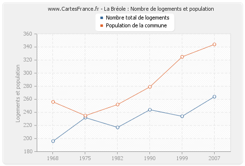 Historique du nombre de logements de La Bréole de 1968 à 2007 :