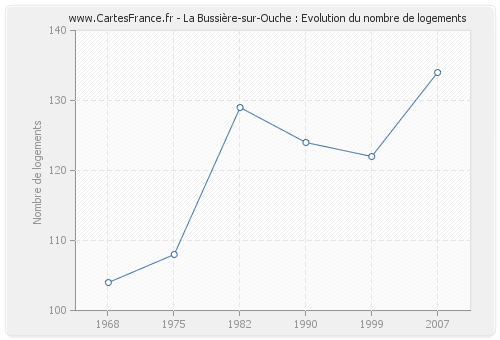 Historique du nombre de logements de La Bussière-sur-Ouche de 1968 à 2007 :