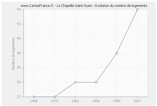 Le nombre de logements de La Chapelle-Saint-Ouen était de 44 en 2007, 38 en 1999, 34 en 1990, 34 en 1982, 32 en 1975 et 32 en 1968.