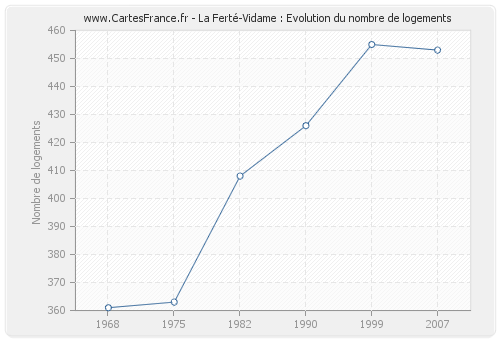 Historique du nombre de logements de La Ferté-Vidame de 1968 à 2007 :