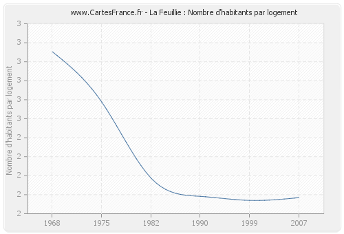 - Nombre d'habitants moyen par logement de La Feuillie en 2007 : 2,08