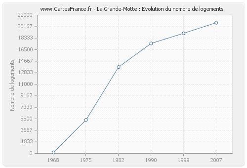 Historique du nombre de logements de La Grande-Motte de 1968 à 2007 :