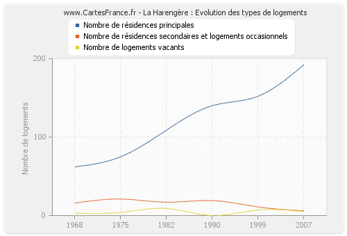 En 2007 les logements de La Harengère étaient composés de 192 résidences principales, 6 résidences secondaires ou occasionnels ainsi que 5 logements vacants.