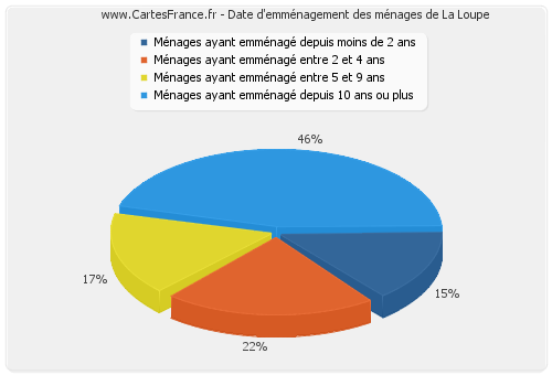 - Nombre de ménages de La Loupe ayant emménagé depuis 10 ans ou plus : 761