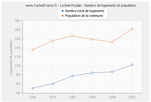 Historique du nombre de logements de La Noë-Poulain de 1968 à 2007 :