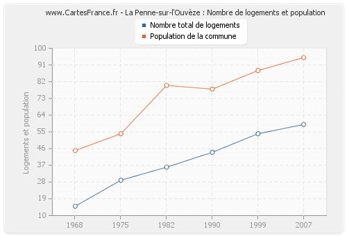 La population de La Penne-sur-l'Ouvèze était de 95 habitants en 2007, 88 habitants en 1999, 78 habitants en 1990, 80 habitants en 1982, 54 habitants en 1975 et 45 habitants en 1968. Parallèlement, le nombre de logements de La Penne-sur-l'Ouvèze était de 59 en 2007, 54 en 1999, 44 en 1990, 36 en 1982, 29 en 1975 et 15 en 1968.