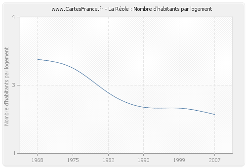 La Ville de La Réole avait en 2007 une moyenne de 1,86 habitants par logement.