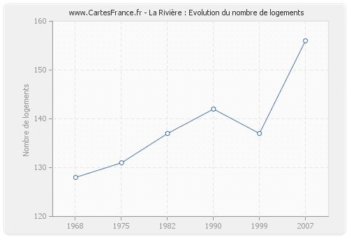 Le nombre de logements de La Rivière était de 156 en 2007, 137 en 1999, 142 en 1990, 137 en 1982, 131 en 1975 et 128 en 1968.