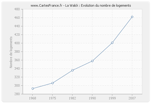 Historique du nombre de logements de La Walck de 1968 à 2007 :