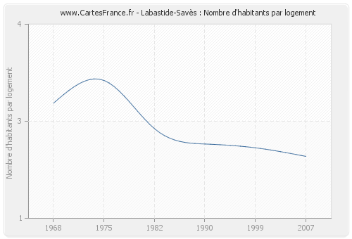 - Nombre d'habitants moyen par logement de Labastide-Savès en 2007 : 1,96
