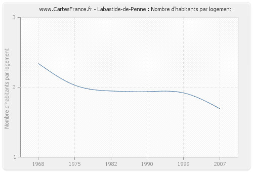 - Nombre d'habitants moyen par logement de Labastide-de-Penne en 2007 : 1,69