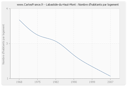- Nombre d'habitants moyen par logement de Labastide-du-Haut-Mont en 2007 : 1,10