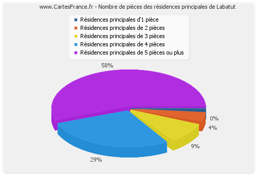 Nombre de pièces des résidences principales de Labatut en 2007 :