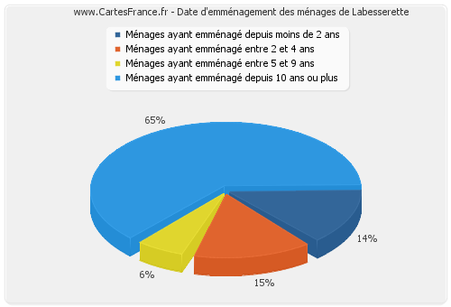 - Nombre de ménages de Labesserette ayant emménagé depuis 10 ans ou plus : 74