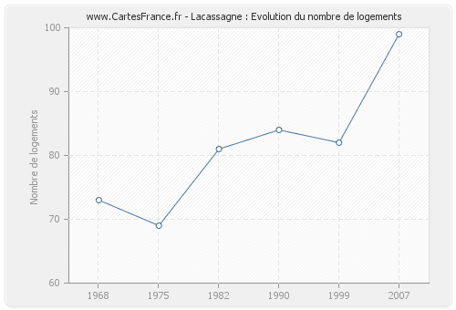 Historique du nombre de logements de Lacassagne de 1968 à 2007 :