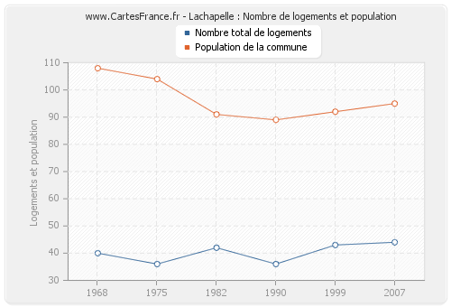 La population de Lachapelle était de 95 habitants en 2007, 92 habitants en 1999, 89 habitants en 1990, 91 habitants en 1982, 104 habitants en 1975 et 108 habitants en 1968. Parallèlement, le nombre de logements de Lachapelle était de 44 en 2007, 43 en 1999, 36 en 1990, 42 en 1982, 36 en 1975 et 40 en 1968.