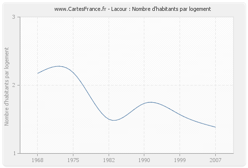 - Nombre d'habitants moyen par logement de Lacour en 2007 : 1,39