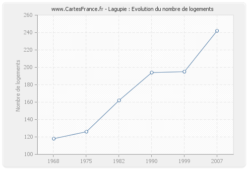 Historique du nombre de logements de Lagupie de 1968 à 2007 :