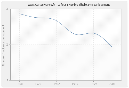 - Nombre d'habitants moyen par logement de Laifour en 2007 : 1,93