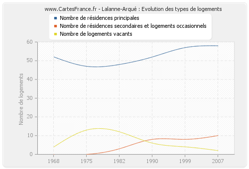 - Nombre de résidences principales de Lalanne-Arqué en 2007 : 58