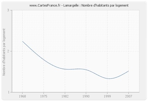 - Nombre d'habitants moyen par logement de Lamargelle en 2007 : 1,52
