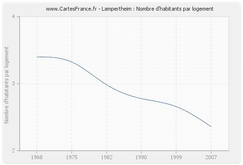 La Ville de Lampertheim avait en 2007 une moyenne de 2,36 habitants par logement.