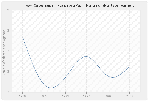 - Nombre d'habitants moyen par logement de Landes-sur-Ajon en 2007 : 2,66