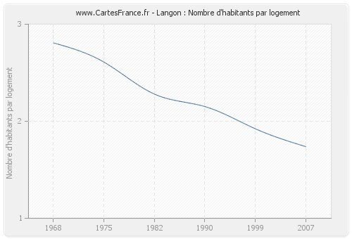 - Nombre d'habitants moyen par logement de Langon en 2007 : 1,74