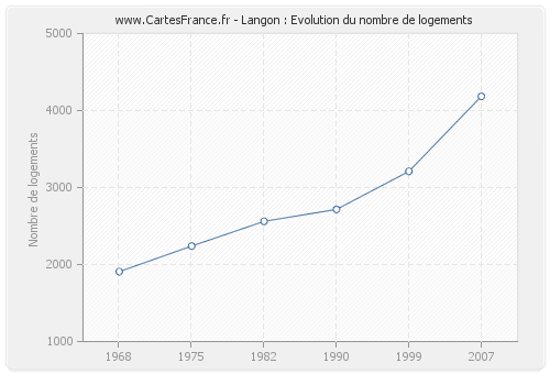 Le nombre de logements de Langon était de 4 185 en 2007, 3 210 en 1999, 2 716 en 1990, 2 561 en 1982, 2 240 en 1975 et 1 908 en 1968.