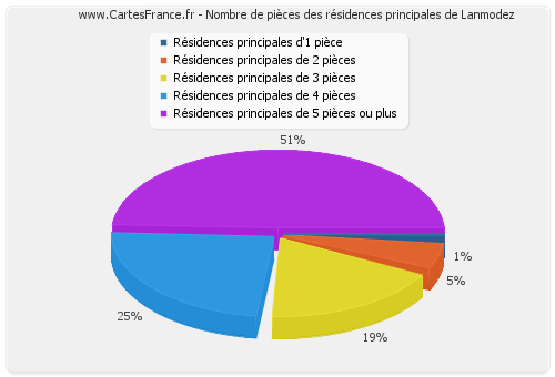 Nombre de pièces des résidences principales de Lanmodez en 2007 :