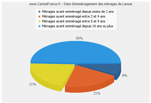 - Nombre de ménages de Lansac ayant emménagé depuis 10 ans ou plus : 19