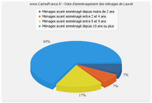 - Nombre de ménages de Lauret ayant emménagé depuis 10 ans ou plus : 20