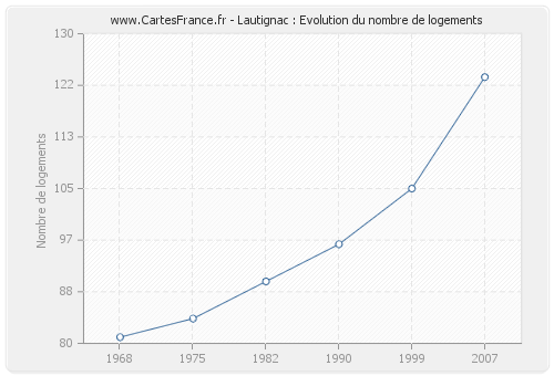 Historique du nombre de logements de Lautignac de 1968 à 2007 :
