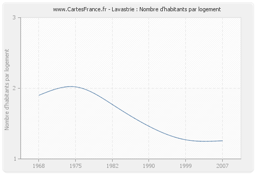 - Nombre d'habitants moyen par logement de Lavastrie en 2007 : 1,26