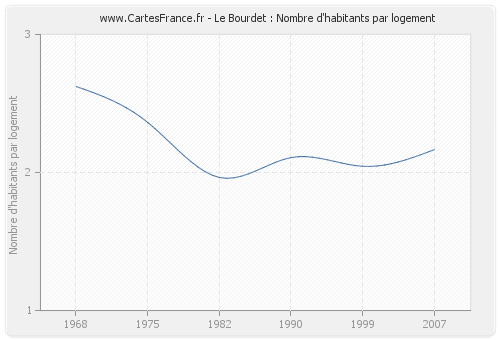 - Nombre d'habitants moyen par logement de Le Bourdet en 2007 : 2,17