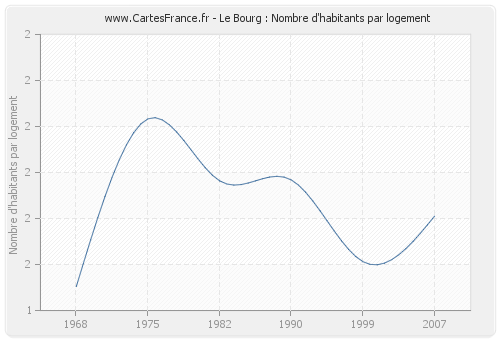 - Nombre d'habitants moyen par logement de Le Bourg en 2007 : 1,61
