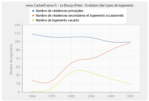 Historique du nombre de logements de Le Bourg-d'Hem de 1968 à 2007 :