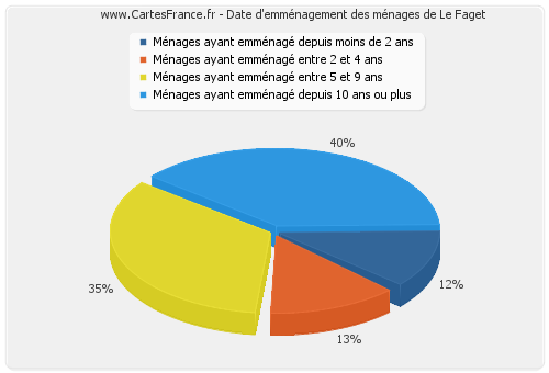 - Nombre de ménages de Le Faget ayant emménagé depuis 10 ans ou plus : 53