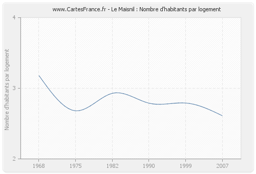 - Nombre d'habitants moyen par logement de Le Maisnil en 2007 : 2,61
