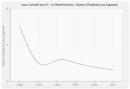- Nombre d'habitants moyen par logement de Le Mesnil-Hardray en 2007 : 2,47