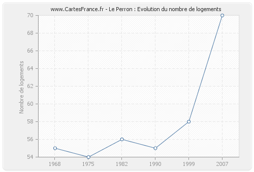 Historique du nombre de logements de Le Perron de 1968 à 2007 :