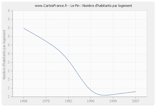 - Nombre d'habitants moyen par logement de Le Pin en 2007 : 2,06