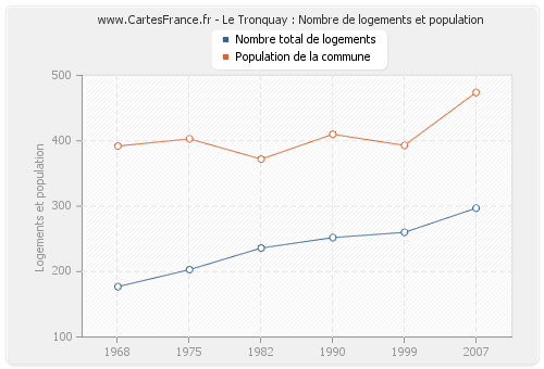 La population de Le Tronquay était de 474 habitants en 2007, 393 habitants en 1999, 410 habitants en 1990, 372 habitants en 1982, 403 habitants en 1975 et 392 habitants en 1968. Parallèlement, le nombre de logements de Le Tronquay était de 297 en 2007, 260 en 1999, 252 en 1990, 236 en 1982, 203 en 1975 et 177 en 1968.
