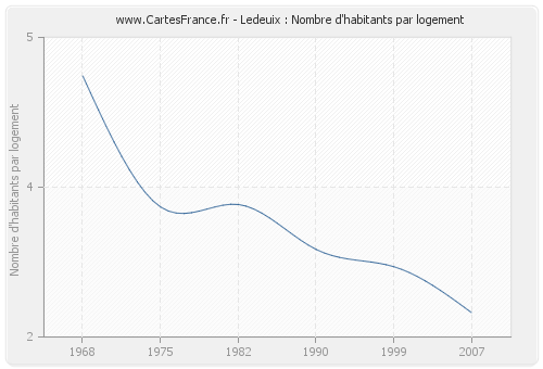 - Nombre d'habitants moyen par logement de Ledeuix en 1968 : 4,61