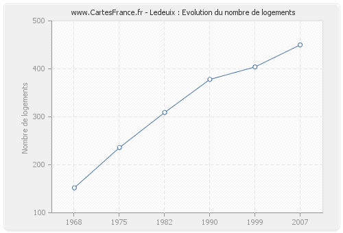 Historique du nombre de logements de Ledeuix de 1968 à 2007 :